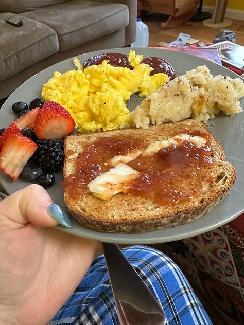 I've never been so excited to make Christmas breakfast. Or spaghetti with sauce from a jar. Or bread. Keep doing things--occasionally--that I’m afraid of doing. In November I went to a spa where I had to get completely nek-ked in front of strangers. It was terrifying and amazing, and I cannot wait to go back, soak in the rooftop pool, eat breaded chicken with rice, read my kindle in multiple saunas, and have every bit of dead skin scrubbed off my body. Over winter break I went to Sephora and paid $75 for someone to teach me how to do my makeup. I’ve used the techniques I learned most workdays, and while I still think I look like a four year old playing with Mommy’s makeup, I’ve received the occasional compliment on how good it looks. Today I spent a few minutes doing an AI (I think) powered tarot reading. There’s still enough evangelical left in me that I found it a little scary, but mostly I thought it was just dumb. I’m finding that the more I do things I’m afraid of, the less scary other things become.
